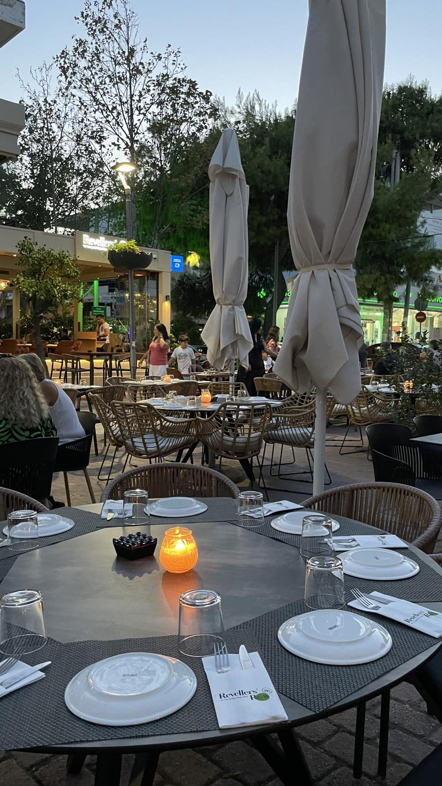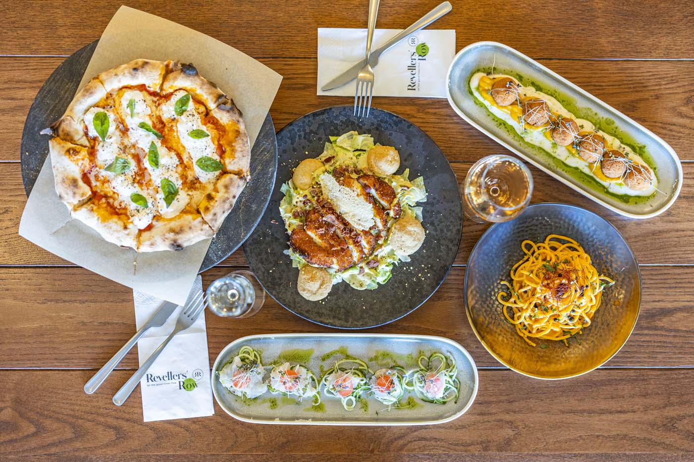 Με signature design και προσεγμένη ατμόσφαιρα, το Revellers’ Row προσφέρει μοναδικές δημιουργίες: εξαιρετικά χαρμάνια καφέ, ευφάνταστο brunch, ξεχωριστά signature cocktails, εκτενή λίστα premium spirits και γευστικές προτάσεις που αναδεικνύουν την αυθεντική Ιταλική κουζίνα. Η μυρωδιά της φρέσκιας ζύμης και των χειροποίητων σαλτσών σε υποδέχεται από την πόρτα, ενώ η προσεγμένη λίστα κρασιών - κυρίως ιταλικές ετικέτες - δημιουργεί το τέλειο ταίριασμα με κάθε πιάτο. Καθ’ όλη τη διάρκεια της ημέρας, το Revellers’ Row εξελίσσεται διακριτικά, από ένα κομψό πρωινό σημείο συνάντησης σε μία must-go spritzeria, με τα πιο απολαυστικά spritz της πόλης. Όταν πέφτει η νύχτα, τα φώτα χαμηλώνουν, η ένταση ανεβαίνει και το Revellers’ Row μεταμορφώνεται σε ένα hotspot διασκέδασης: live ελληνική και διεθνής μουσική, non-stop vibes και ενέργεια που γεμίζει κάθε γωνιά του χώρου. Το προσεγμένο design υψηλής ποιότητας και η φιλοξενία που προσφέρουμε δημιουργούν ένα περιβάλλον που αντανακλά τις αξίες μας: αισθητική, ποιότητα και προσοχή στη λεπτομέρεια.