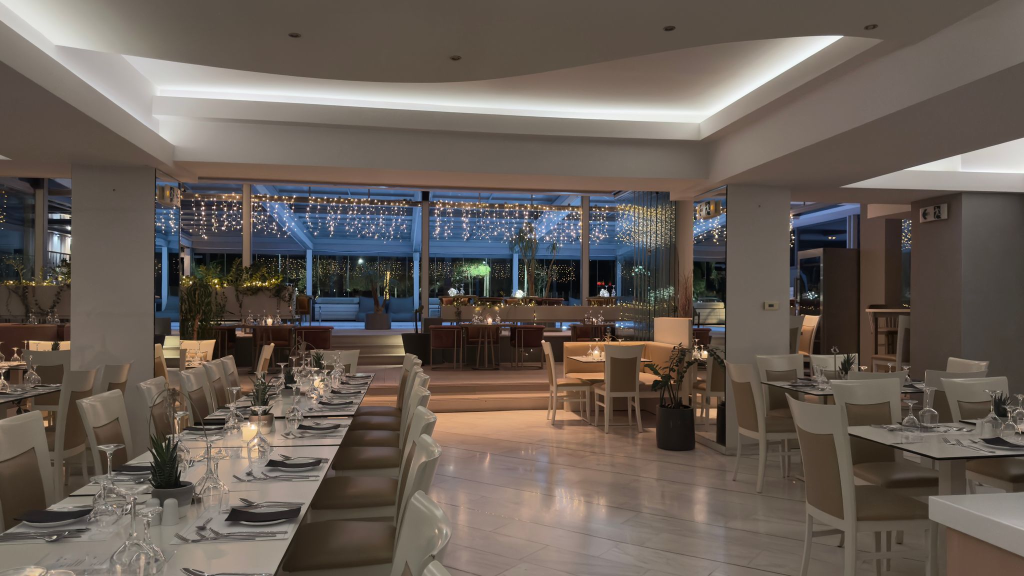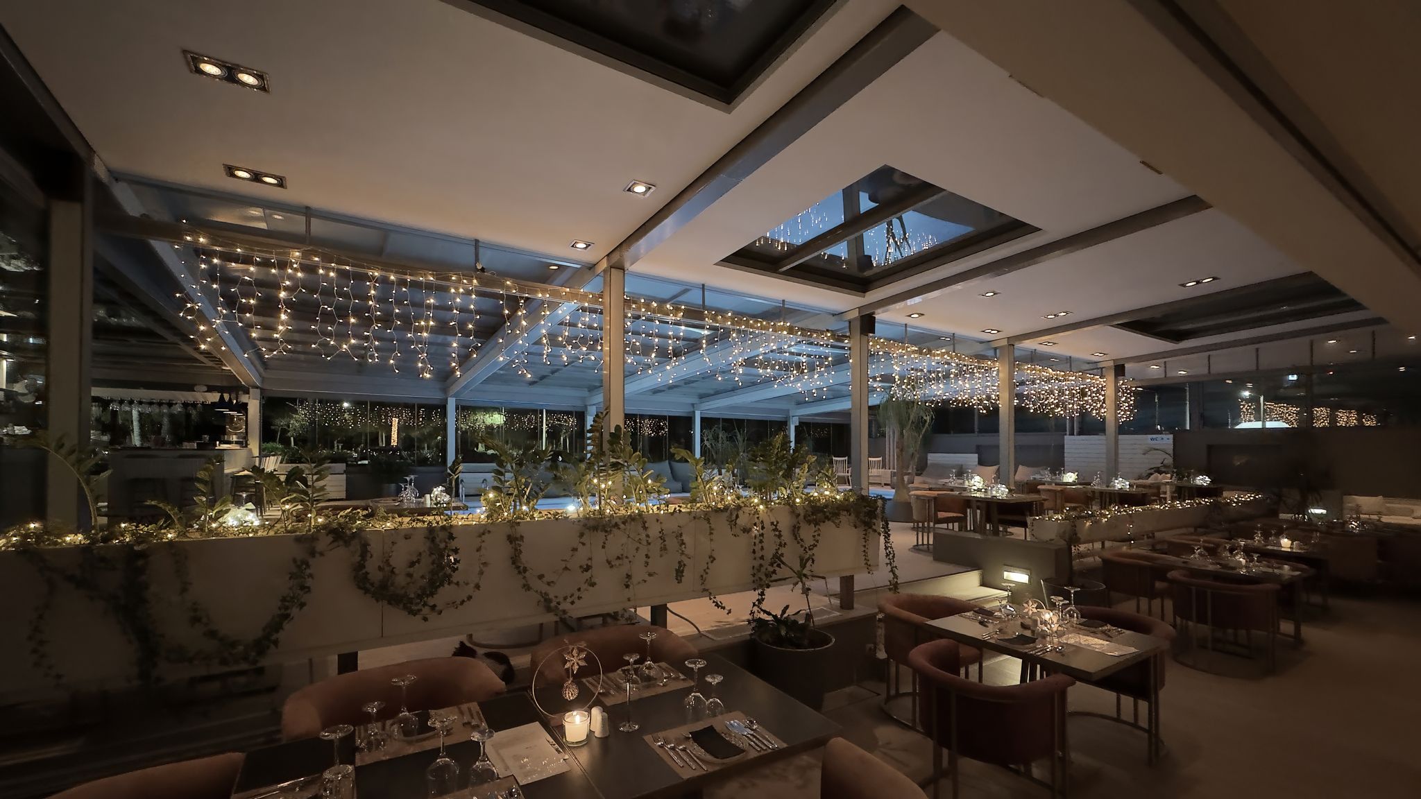 Οι δύο μεγαλύτεροι χώροι μπορούν να λειτουργήσουν είτε ανοιχτοί είτε κλειστοί, προσαρμοζόμενοι πλήρως στις καιρικές συνθήκες, εξασφαλίζοντας άνεση και λειτουργικότητα καθ’ όλη τη διάρκεια του έτους.
