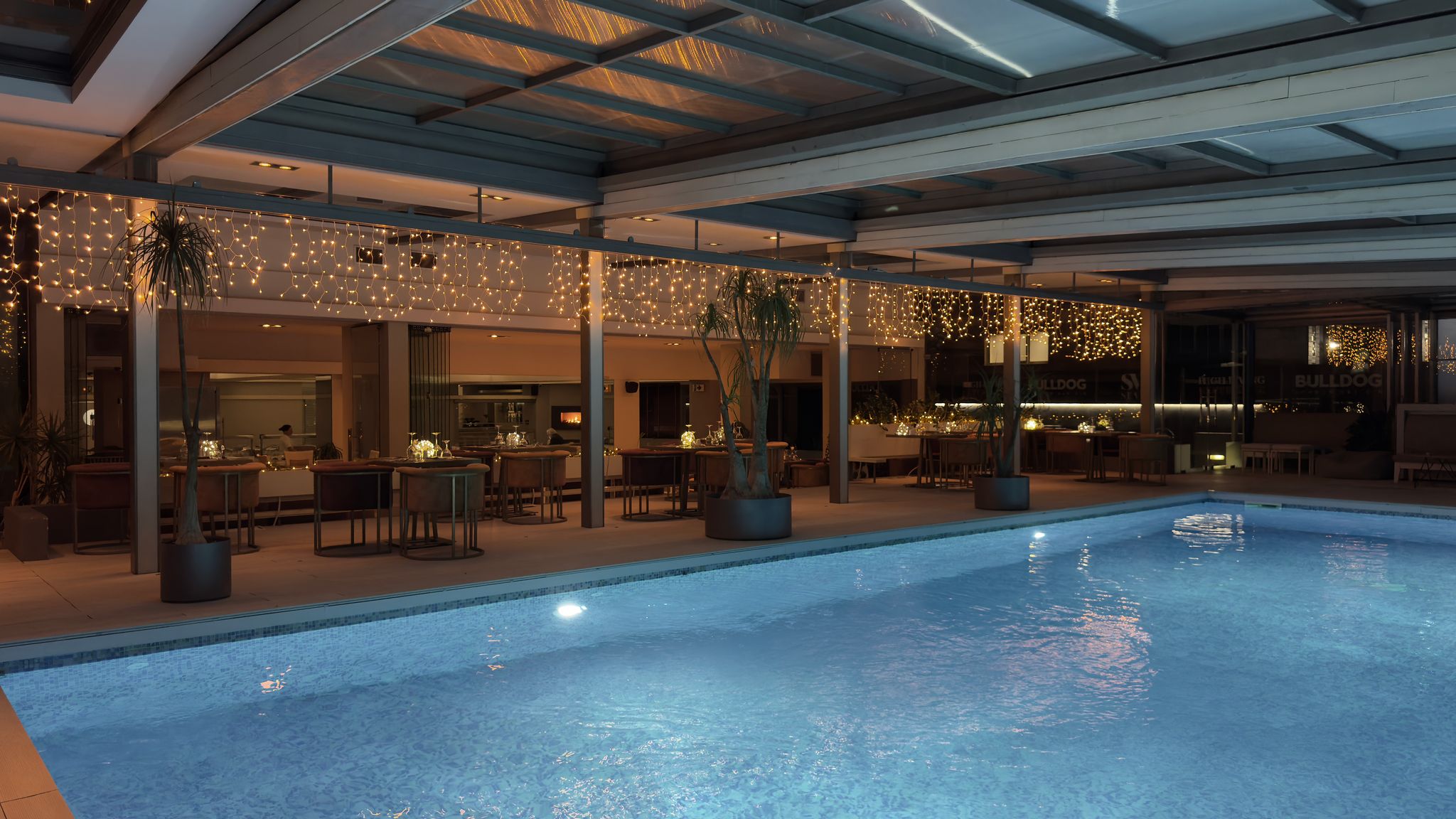 Κύριος χώρος εκδηλώσεων με πισίνα, ο οποίος μπορεί να διαμορφωθεί και να διαχωριστεί σε διαφορετικές διαστάσεις, ανάλογα με την επιθυμητή χωρητικότητα και το concept της εκδήλωσης.